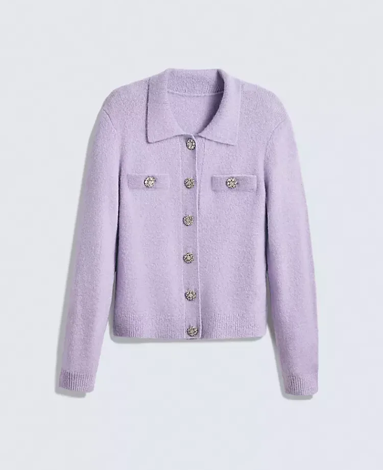 Ann Taylor Sweaters|All Sweaters|Embellished Collared Cardigan Lavender Bouquet
