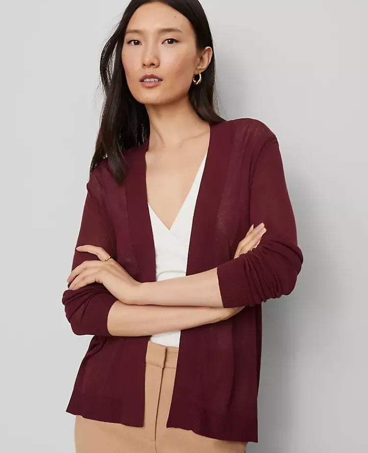 Ann Taylor Sweaters|All Sweaters|Essential Open Cardigan Windsor Wine