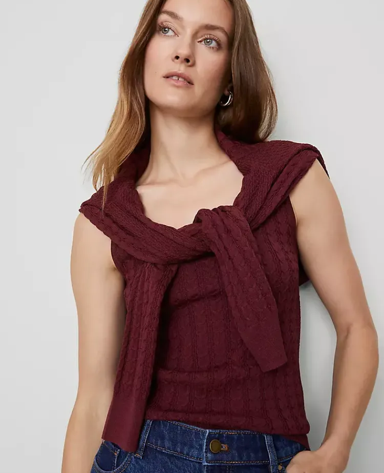 Ann Taylor Sweaters|All Sweaters|Mixed Cable Sweater Shell Windsor Wine