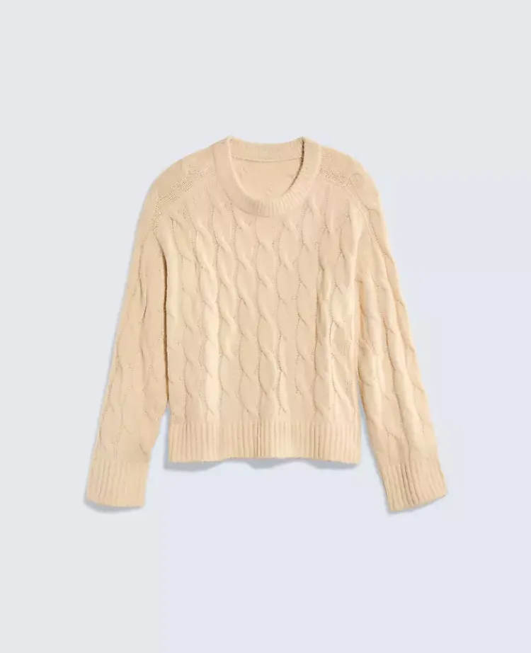 Ann Taylor Sweaters|All Sweaters|Petite Cable Crew Neck Sweater Pale Sandalwood
