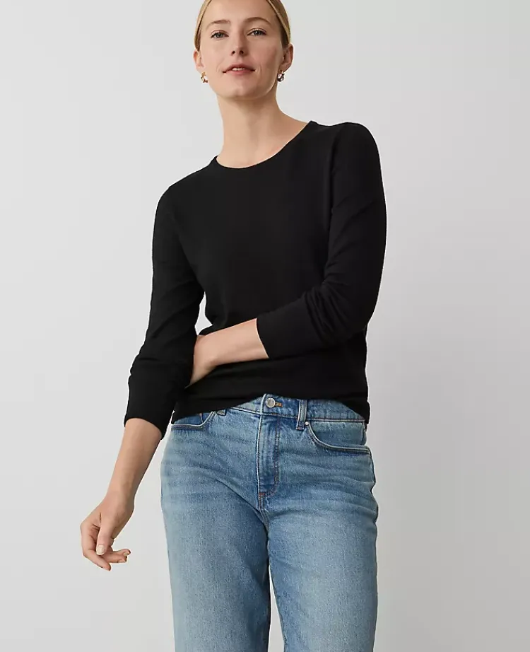 Ann Taylor Sweaters|All Sweaters|Petite Essential Crew Neck Sweater Black