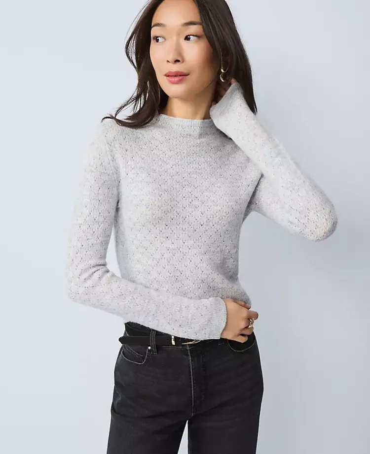 Ann Taylor Sweaters|All Sweaters|Pointelle Mock Neck Sweater Medium Light Heather Grey