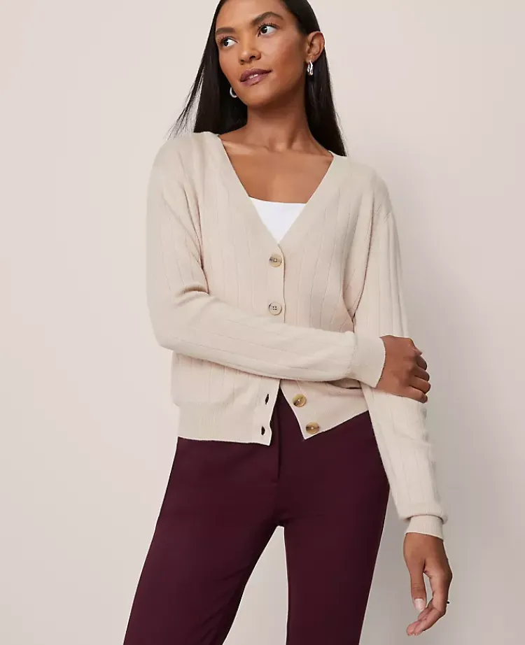 Ann Taylor Sweaters|All Sweaters|Ribbed Wedge Cardigan Pale Sandalwood