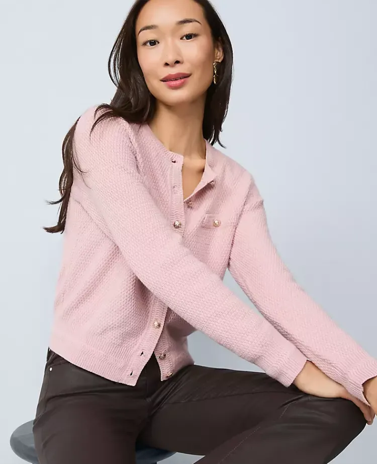 Ann Taylor Sweaters|All Sweaters|Textured Cardigan Pale Mauve
