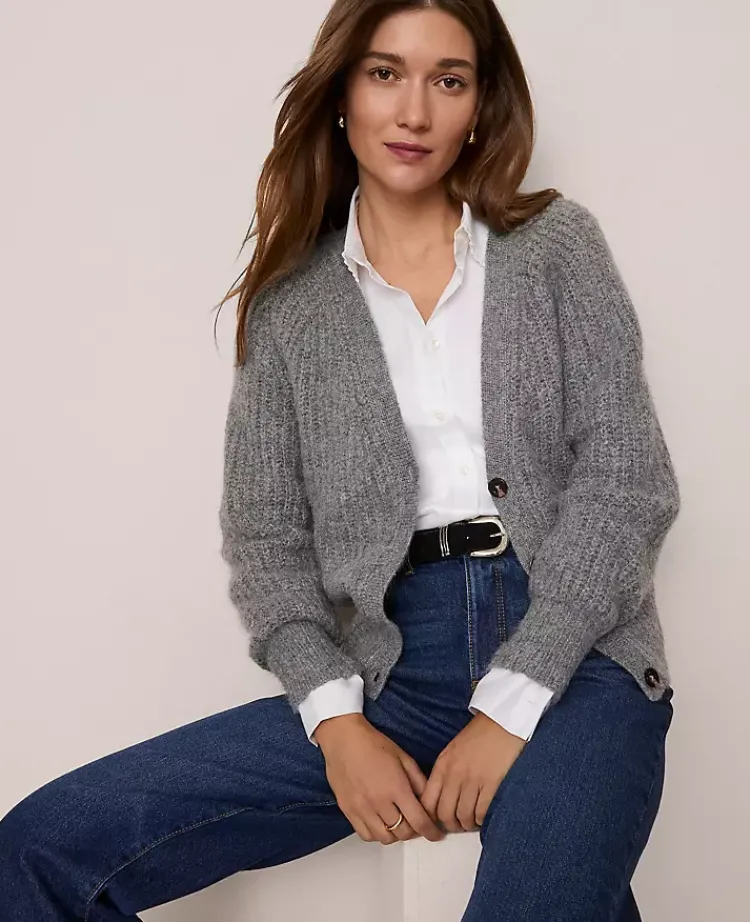 Ann Taylor Sweaters|All Sweaters|Weekend Collection Cozy Ribbed Cardigan Medium Heather Grey