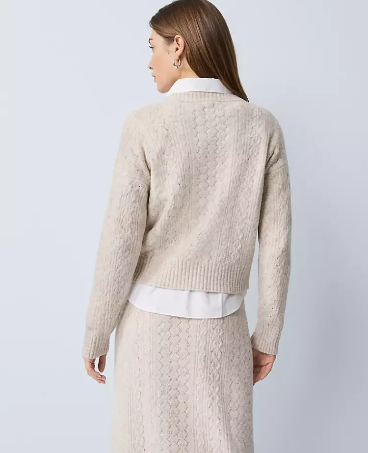 Discover Ann Taylor Weekend. Effortlessly polished pieces for wherever your plans take you. Designed with cable and pointelle stitching, this soft sweater is equally versatile and cozy. Ribbed crew neck, cuffs and hem. Long sleeves. Drop shoulders.