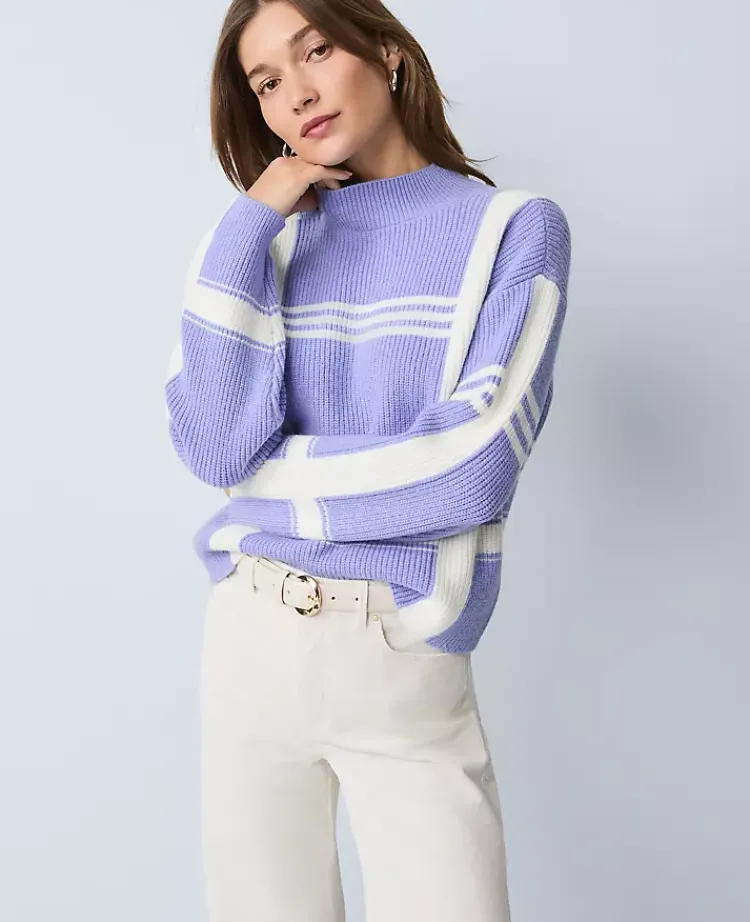 Ann Taylor Sweaters|All Sweaters|Weekend Collection Plaid Mock Neck Sweater Blue Multi