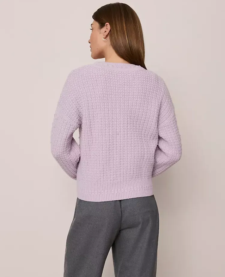 Ann Taylor Sweaters|All Sweaters|Weekend Collection Popcorn-Stitch Cable Sweater Lavender Frost