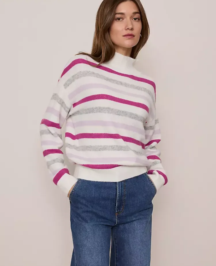 Discover Ann Taylor Weekend. Effortlessly polished, lived-in looks for wherever your plans take you. Vibrant stripes adds a modern definition to this flattering turtleneck sweater. Ribbed turtleneck, cuffs, and hem. Long sleeves.