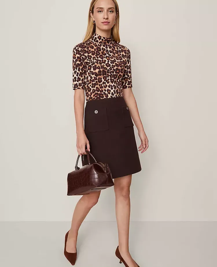 Ann Taylor Tops And Blouses|Animal Print Mock Neck Top Pale Sandalwood