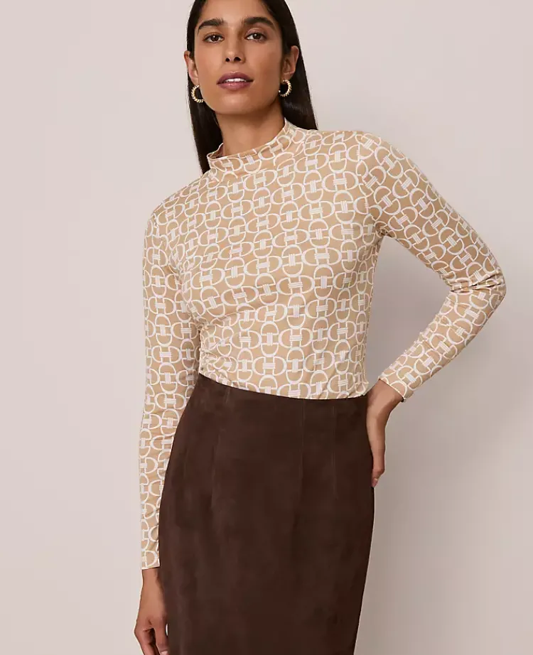 Ann Taylor Tops And Blouses|Chain Link Mock Neck Top Cafe Au Lait