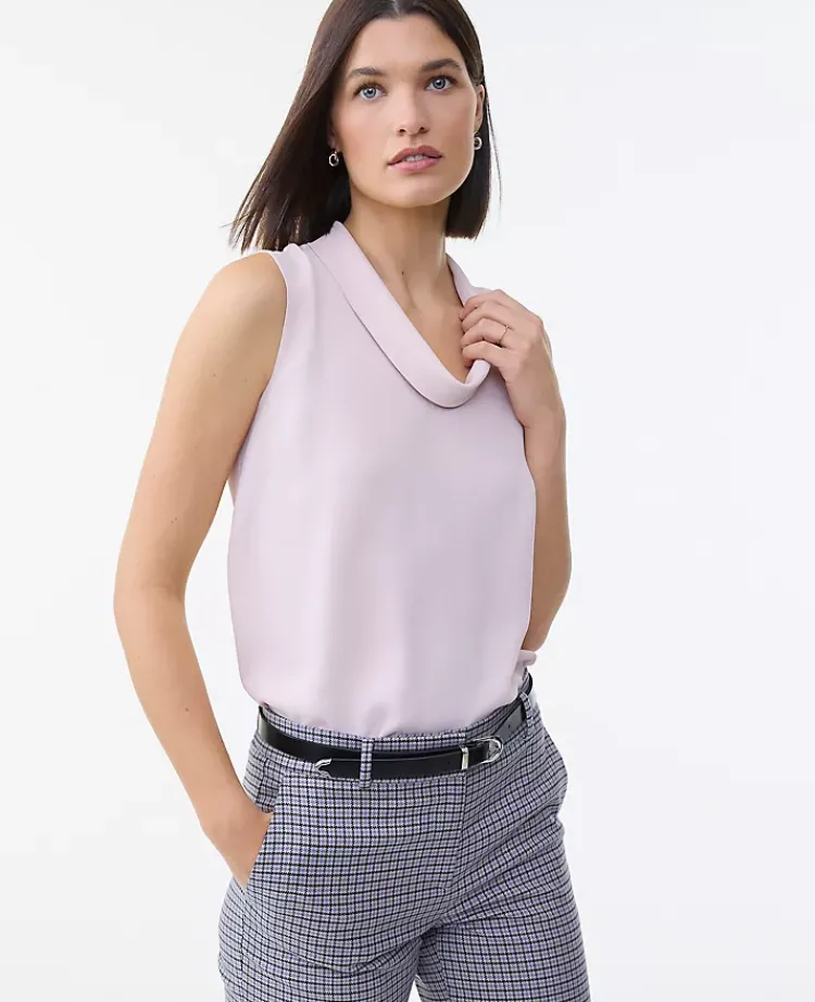Designed with a flattering draped neckline, this endlessly chic cowl neck top can be worn under blazers or on its own. Cowl neck. Sleeveless.