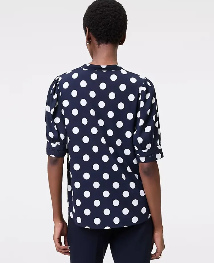 Ann Taylor Tops And Blouses|Dotted Lace Trim Mixed Media Top Night Sky