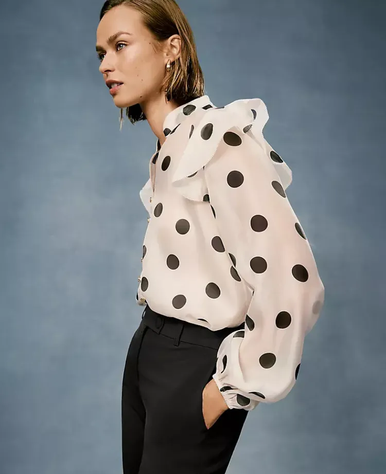 Ann Taylor Tops And Blouses|Dotted Ruffle Trim Blouse Ivory Whisper