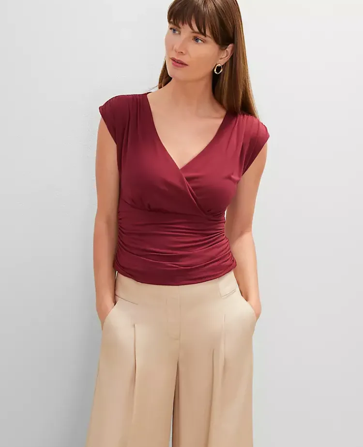 Ann Taylor Tops And Blouses|Gathered V-Neck Top Moroccan Red