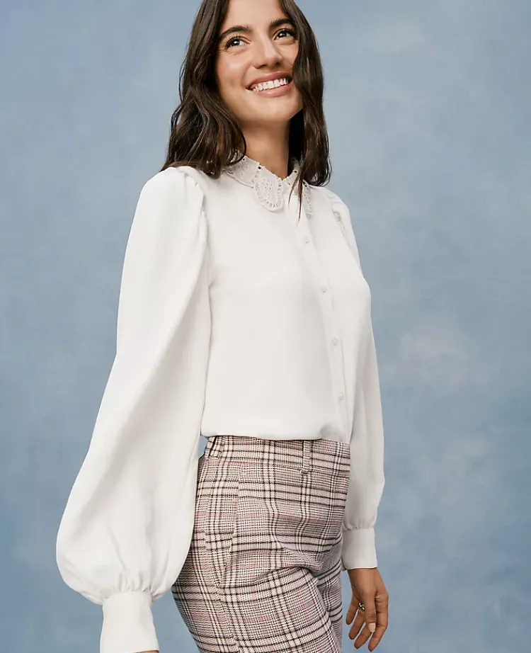 Ann Taylor Tops And Blouses|Lace Collar Blouson Sleeve Shirt Winter White