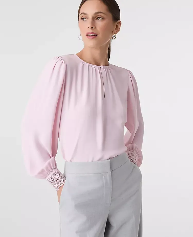 Ann Taylor Tops And Blouses|Lace Trim Blouse Pink Ribbon