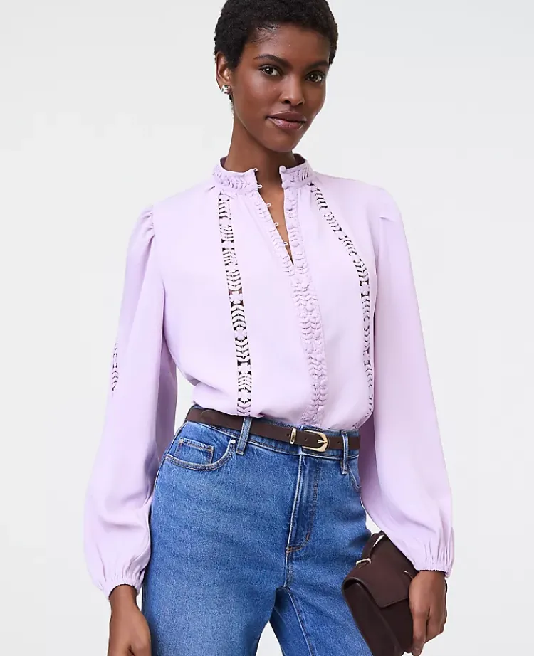 Ann Taylor Tops And Blouses|Lace Trim Blouse Sunrise Lavender