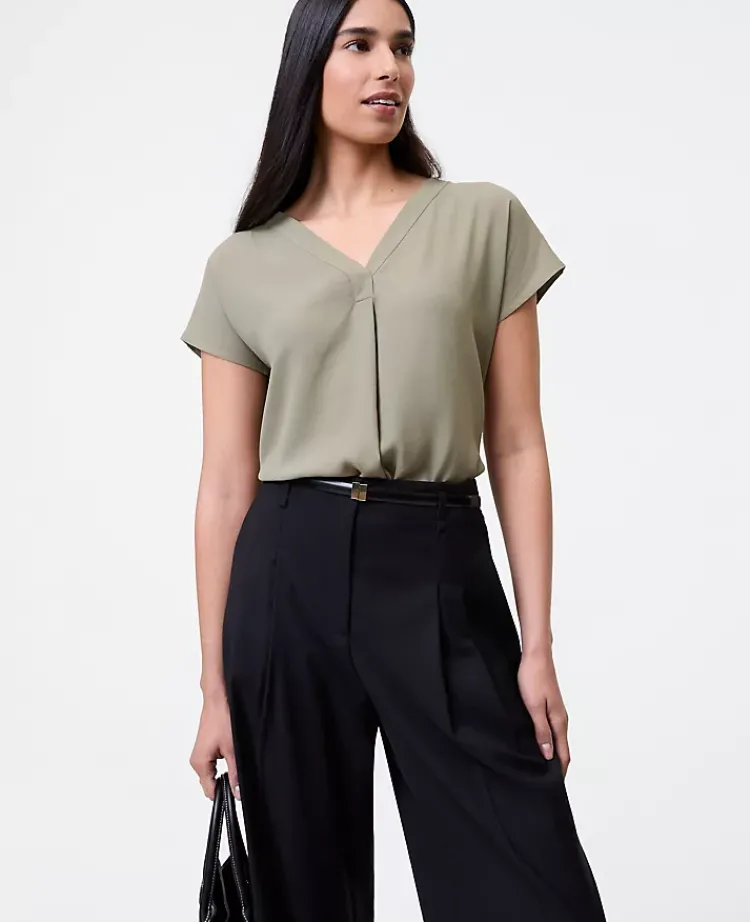 Ann Taylor Tops And Blouses|Mixed Media Pleat Front Top Dried Moss