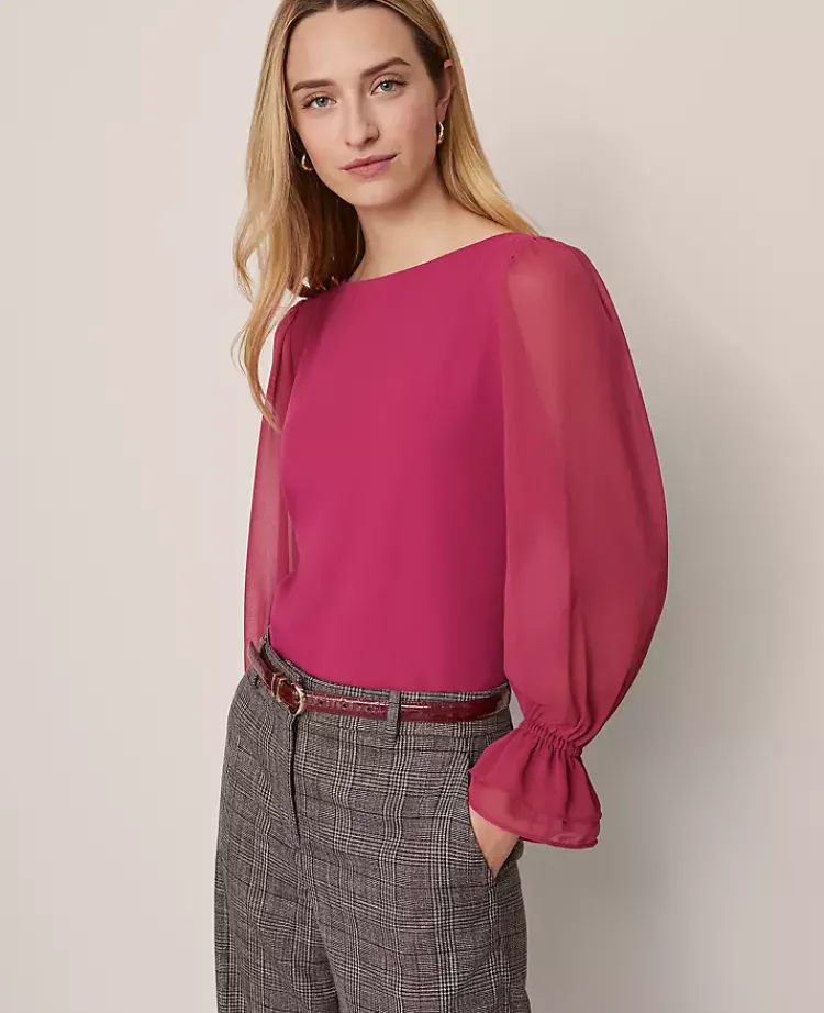 Ann Taylor Tops And Blouses|Mixed Media Pleated Sleeve Top Berry Splash