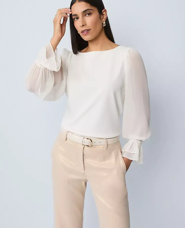Ann Taylor Tops And Blouses|Mixed Media Pleated Sleeve Top Winter White
