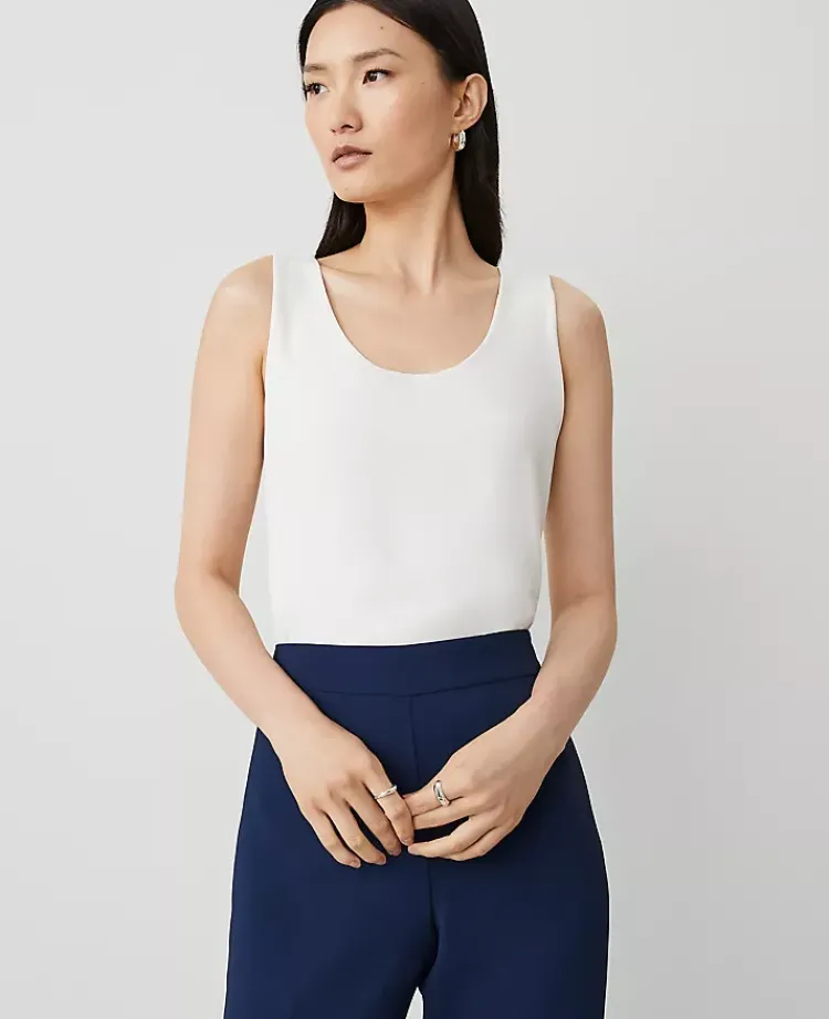 Ann Taylor Tops And Blouses|Mixed Media Tank Top Winter White