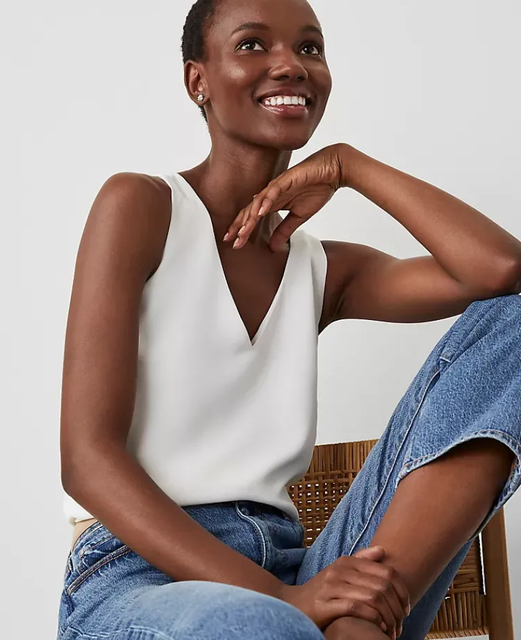 Ann Taylor Tops And Blouses|Mixed Media V-Neck Shell Winter White