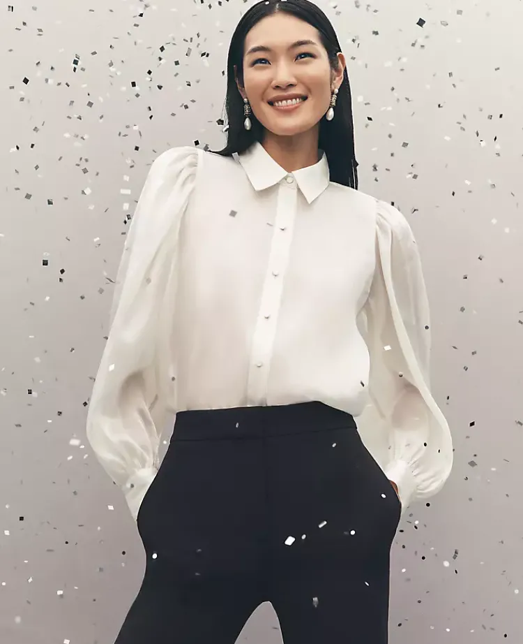 Ann Taylor Tops And Blouses|Organza Voluminous Collared Shirt Winter White