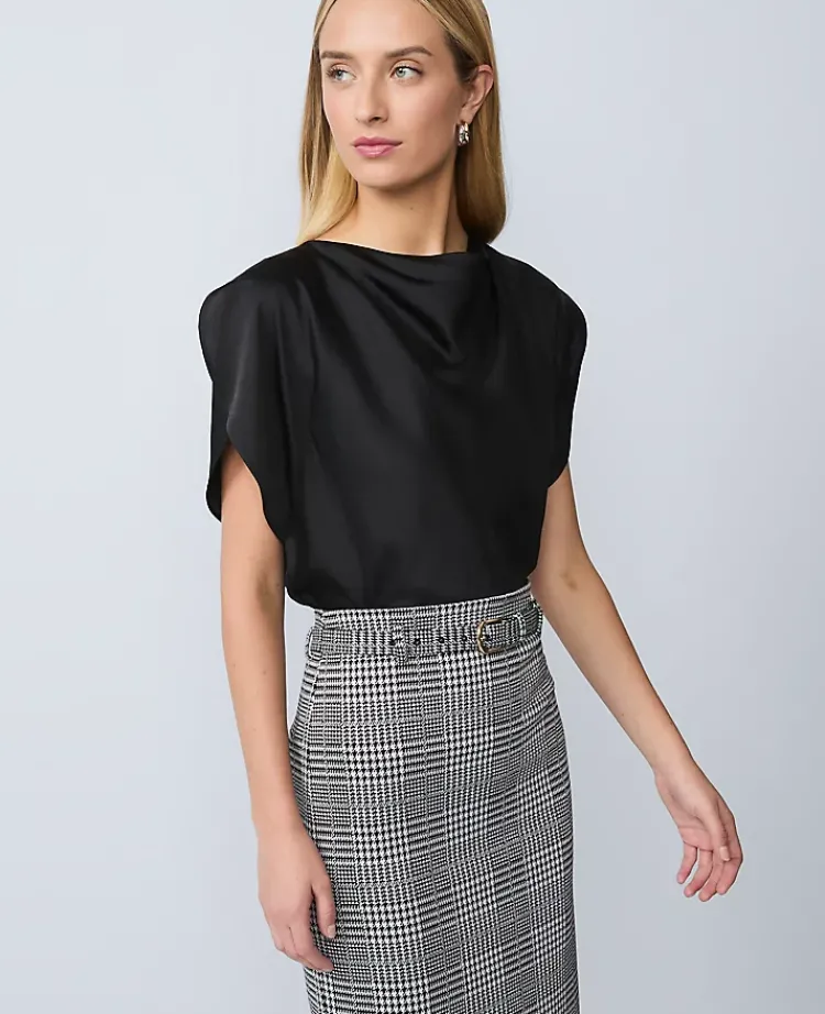 Ann Taylor Tops And Blouses|Petite Draped Satin Blouse Black