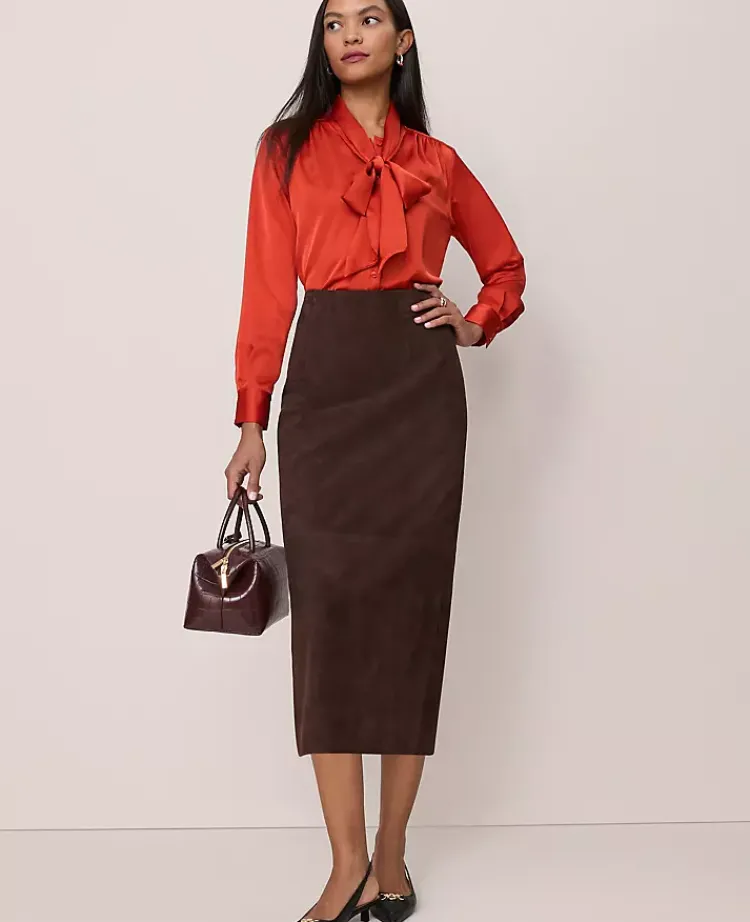 Ann Taylor Tops And Blouses|Petite Satin Bow Blouse Amaretto