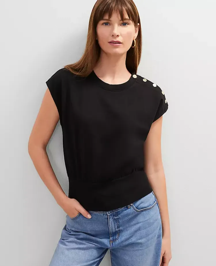 Ann Taylor Tops And Blouses|Petite Shoulder Button Top Black