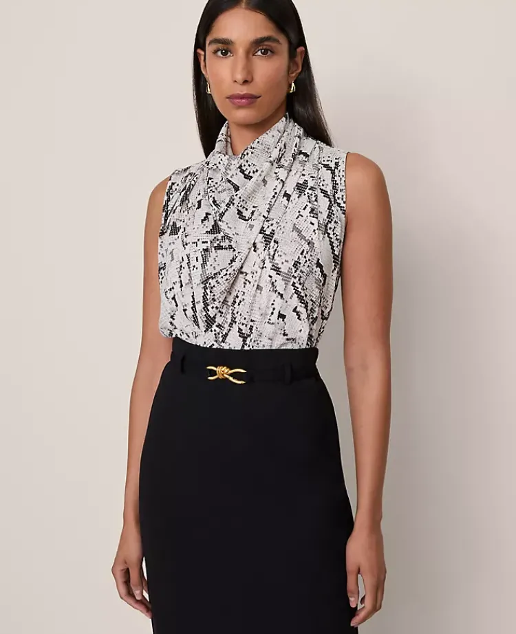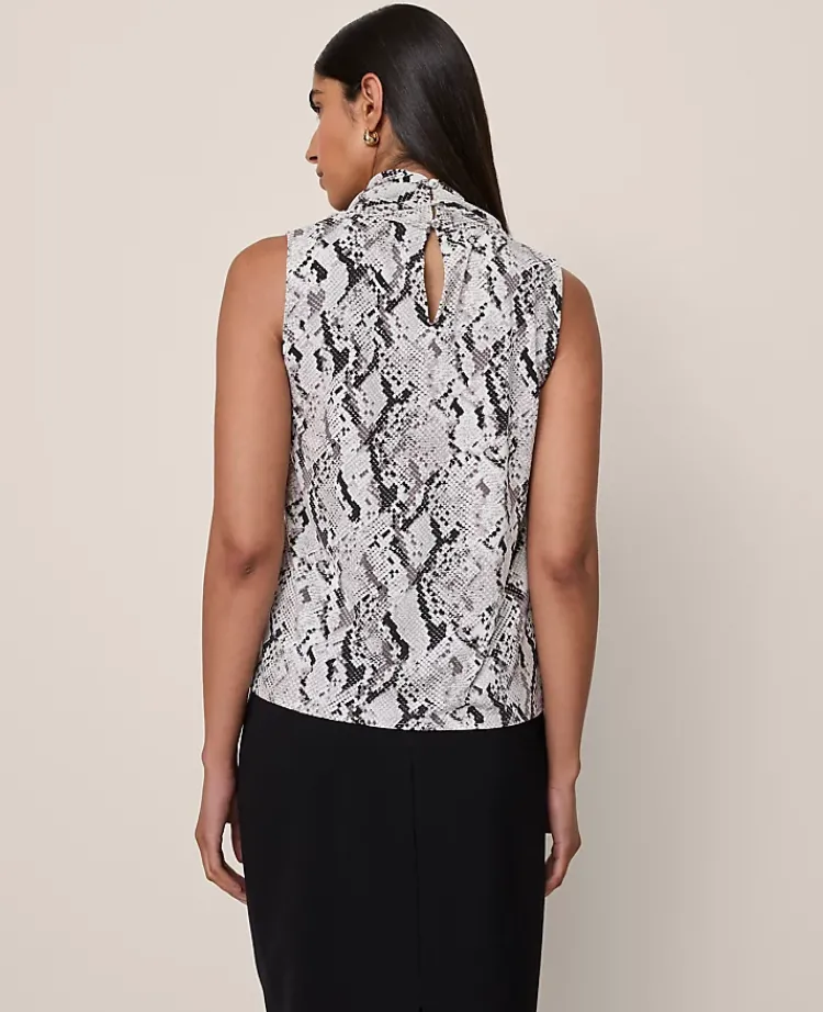 Ann Taylor Tops And Blouses|Petite Snake Print Cowl Neck Blouse Winter White
