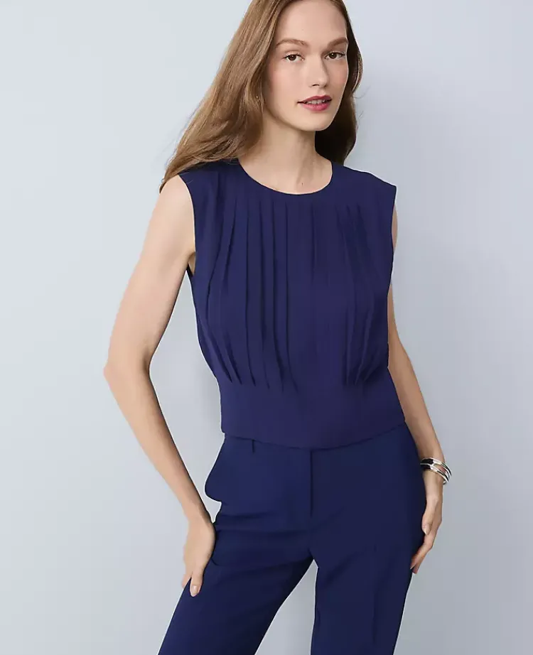 Ann Taylor Tops And Blouses|Pleated Satin Tank Top Twilight Sea