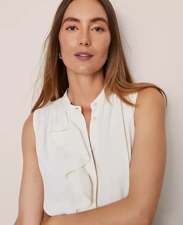 Ann Taylor Tops And Blouses|Ruffle Sleeveless Blouse Winter White