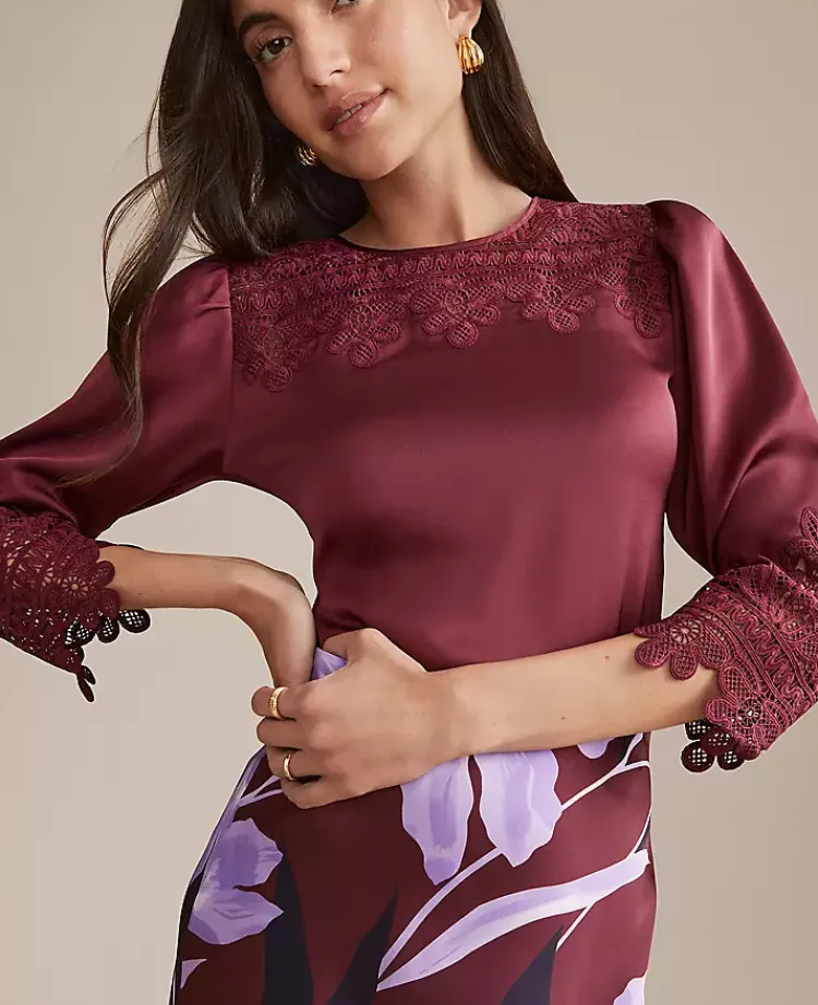 Ann Taylor Tops And Blouses|Satin Lace Trim Top Windsor Wine