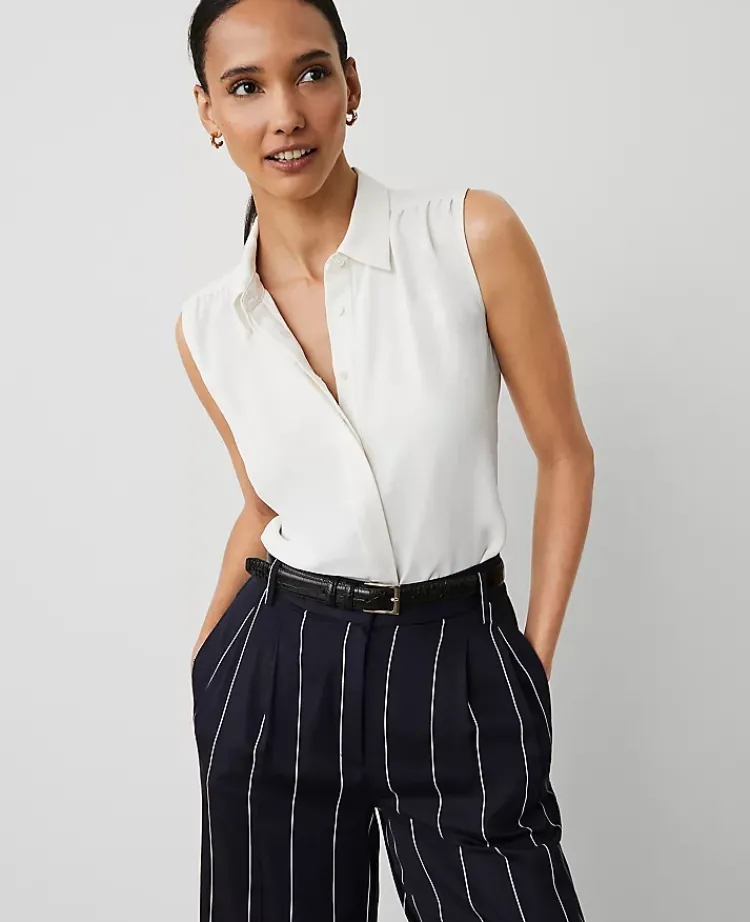 Ann Taylor Tops And Blouses|Shirred Yoke Sleeveless Shirt Winter White