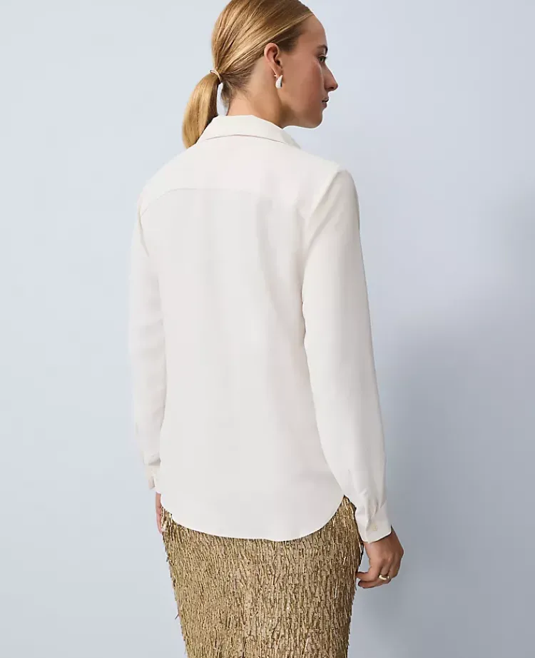 Ann Taylor Tops And Blouses|Silk Camp Shirt Winter White