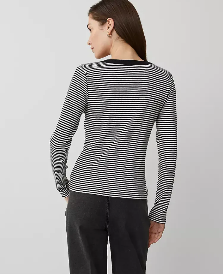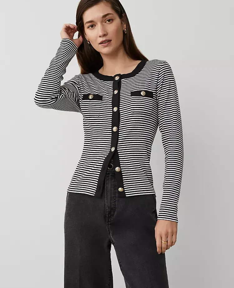 Ann Taylor Tops And Blouses|Stripe Button Knit Jacket Black/White