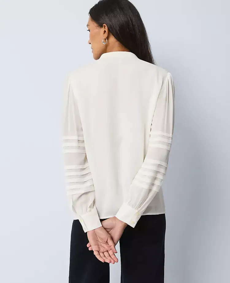 Discover Ann Taylor Weekend. Effortlessly polished pieces for wherever your plans take you. Pull together laid-back looks with this effortlessly chic pintucked button down. Crew neck. Front button closures. Long raglan sleeves with button cuffs.
