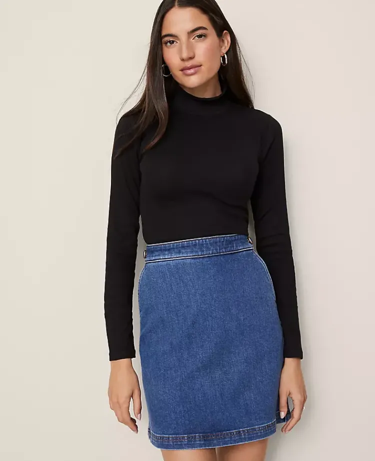 Discover Ann Taylor Weekend. Effortlessly polished pieces for wherever your plans take you. A romantic ruffled neck adds feminine charm to this chic mock neck top. Mock neck. Long sleeves. Back slit with button closures.
