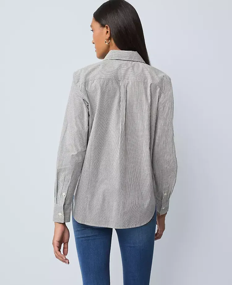 Ann Taylor Tops And Blouses|Weekend Tops|Weekend Collection Striped Relaxed Perfect Shirt Black
