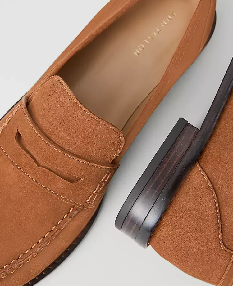 Ann Taylor Weekend Shoes|Weekend Shoes|Weekend Collection Suede Penny Loafer Spice Brown