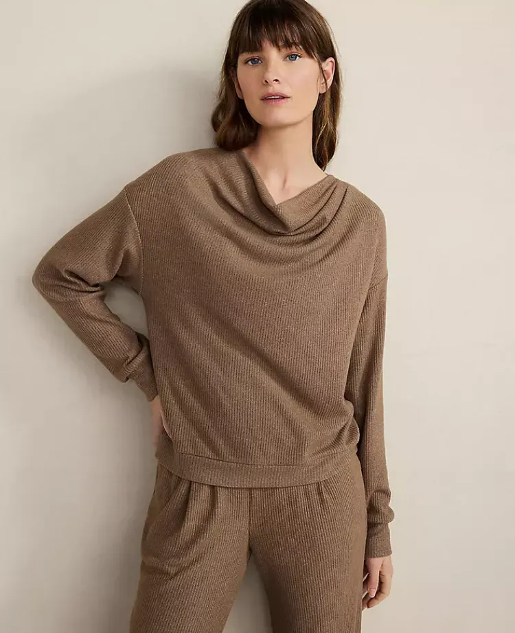 Ann Taylor All Weekend|Haven Well Within Brushed Rib Knit Drape Neck Top Driftwood