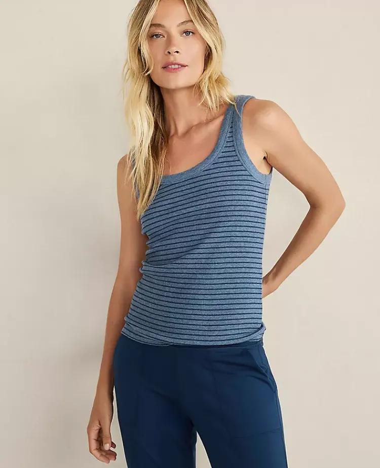 Ann Taylor All Weekend|Haven Well Within Essential Organic Cotton Delicate Stripe Scoop Neck Tank Twilight Blue Heather