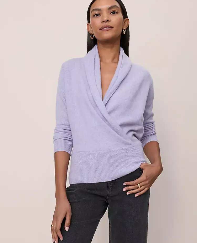 Ann Taylor Cashmere|Sweaters|Cashmere Shawl Collar Sweater Light Lavender Melange