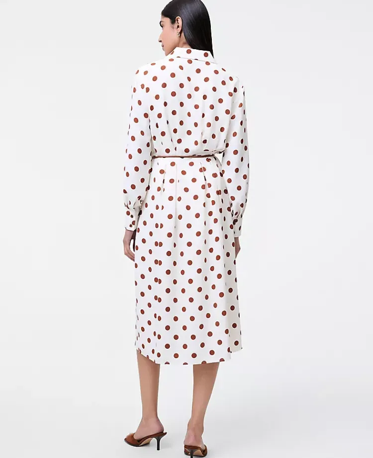 Ann Taylor Dresses|Dotted Satin Midi Shirtdress Tortoise Shell