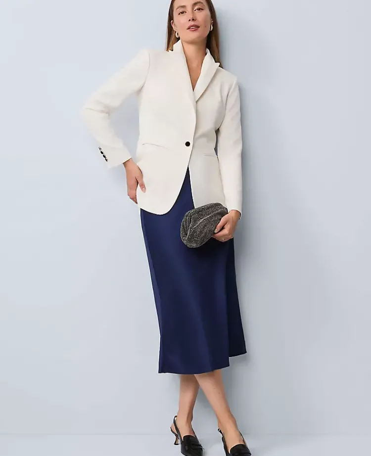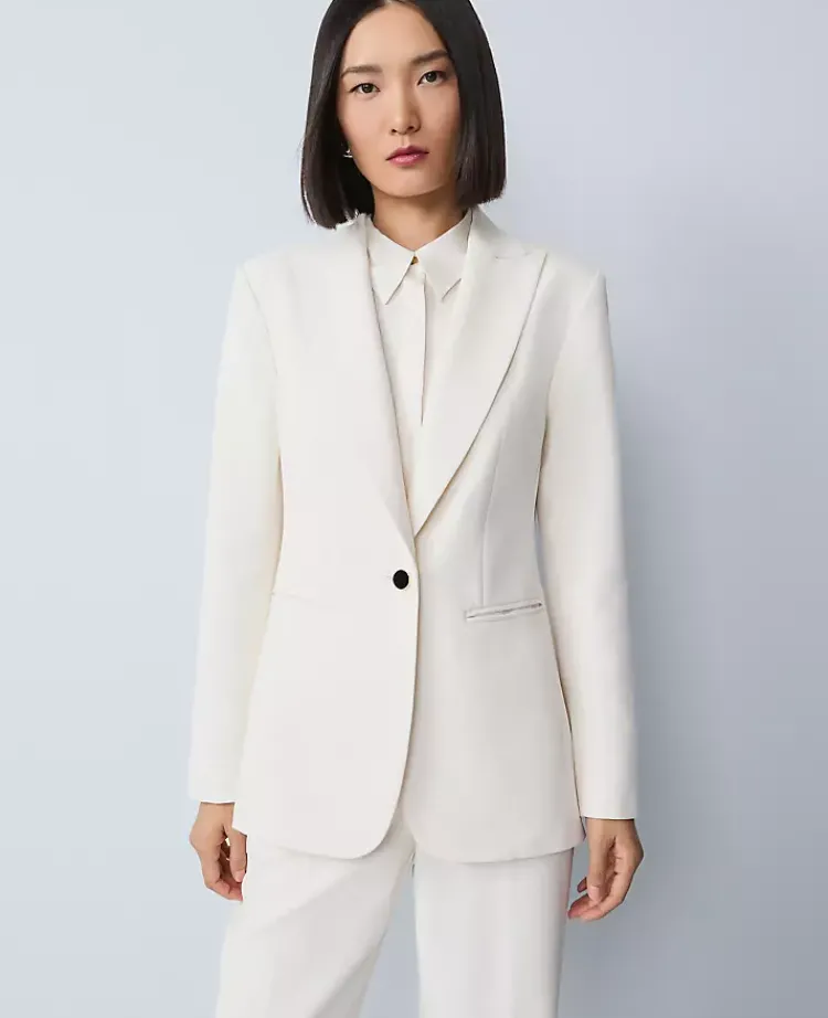 Ann Taylor Jackets And Blazers|Jackets And Blazers|The Petite Belted Fitted Long Blazer In Crepe Winter White