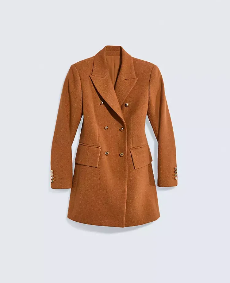 Ann Taylor Jackets And Blazers|Petite Jackets And Blazers|Petite Fitted Long Double Breasted Coat Spiced Cider