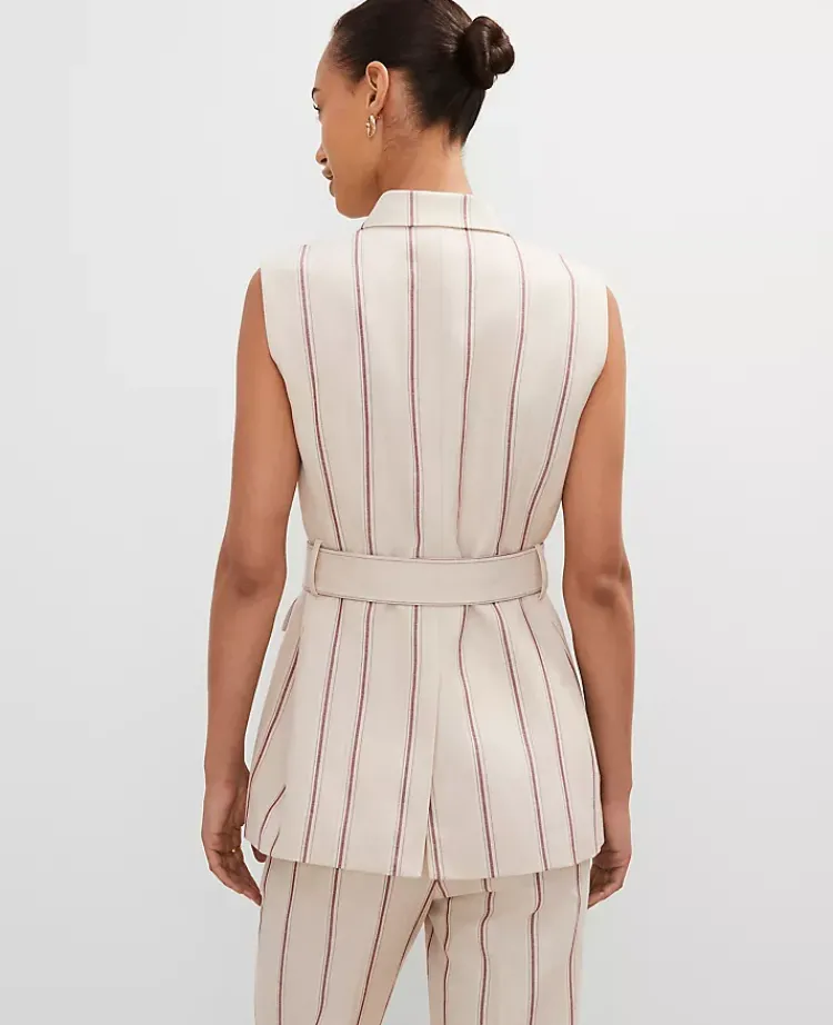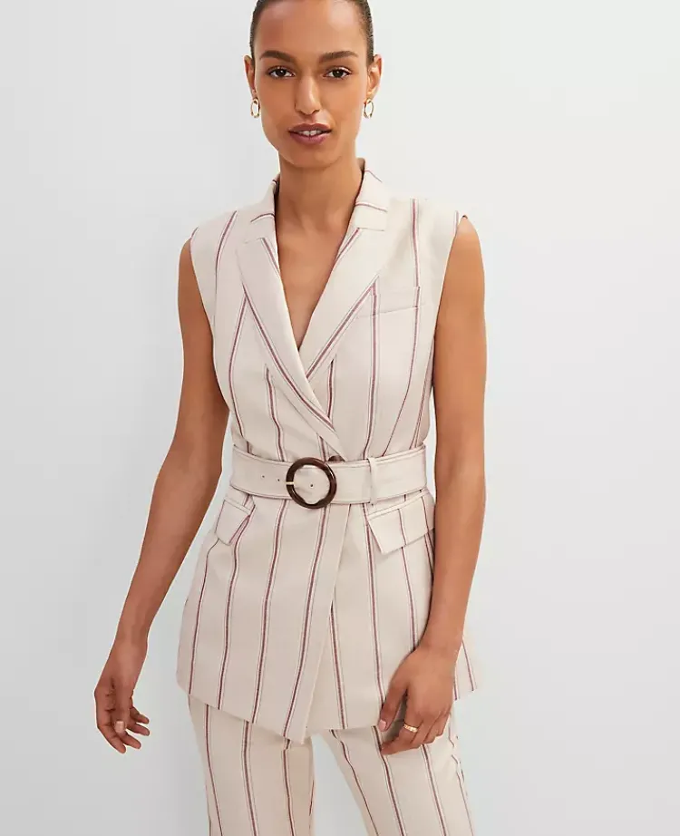 Ann Taylor Jackets And Blazers|Petite Jackets And Blazers|Petite Pinstripe Belted Vest Flax