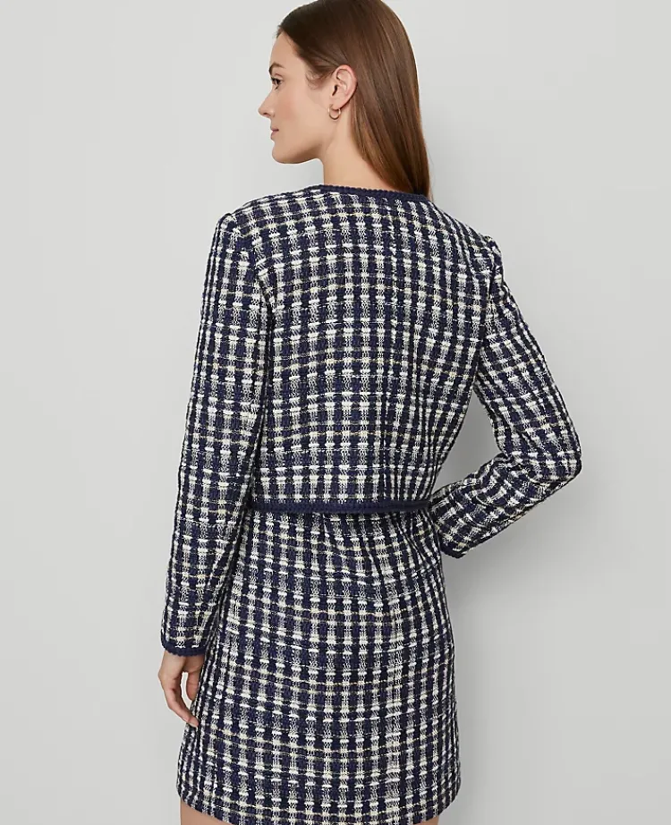 Ann Taylor Jackets And Blazers|Petite Jackets And Blazers|Petite Tweed Patch Pocket Jacket Navy/White Combo